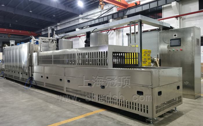 400℃高溫隧道爐 內(nèi)膽尺寸:長(zhǎng)4000mm*寬670mm*高350mm. 外形尺寸(約):總長(zhǎng)10600mm,其中上料段長(zhǎng)1600mm、進(jìn)料過(guò)渡區(qū)600mm、烘烤段長(zhǎng)4000mm、出料過(guò)渡區(qū)600mm、冷卻段3000mm、出料段長(zhǎng)800mm、寬1270mm、高1700mm、操作高度800mm 溫區(qū)控制:2個(gè)溫區(qū)控制(含主控溫和超溫保護(hù)控制);爐內(nèi)含三個(gè)測(cè)溫點(diǎn),分別為入口處、中間處、出口處。 溫度范圍:室溫~450℃,可調(diào)可恒溫,工件出線溫度≤45℃ 溫度均勻度:±2℃%(恒溫狀態(tài)下,空載測(cè)試);儀表溫控精度:±1℃ 升溫速率:≥8℃/min;外殼溫度:溫升不超過(guò)環(huán)境+15℃,接縫處周邊除外。 電源:三相五線制,380V,50HZ 熱源系統(tǒng):電加熱,不銹鋼翅片加熱管220V*2.3KW/支*24支 熱風(fēng)運(yùn)風(fēng)方式:強(qiáng)制左右底部三面循環(huán)運(yùn)風(fēng)(請(qǐng)?jiān)敿?xì)說(shuō)明,并在圖紙中增加熱風(fēng)氣流示意圖) 功率(約):烘烤段28KW*2=56KW,總功率約70KW。 具體400℃高溫隧道爐工藝參數(shù)請(qǐng)來(lái)電詳詢:021-67353639